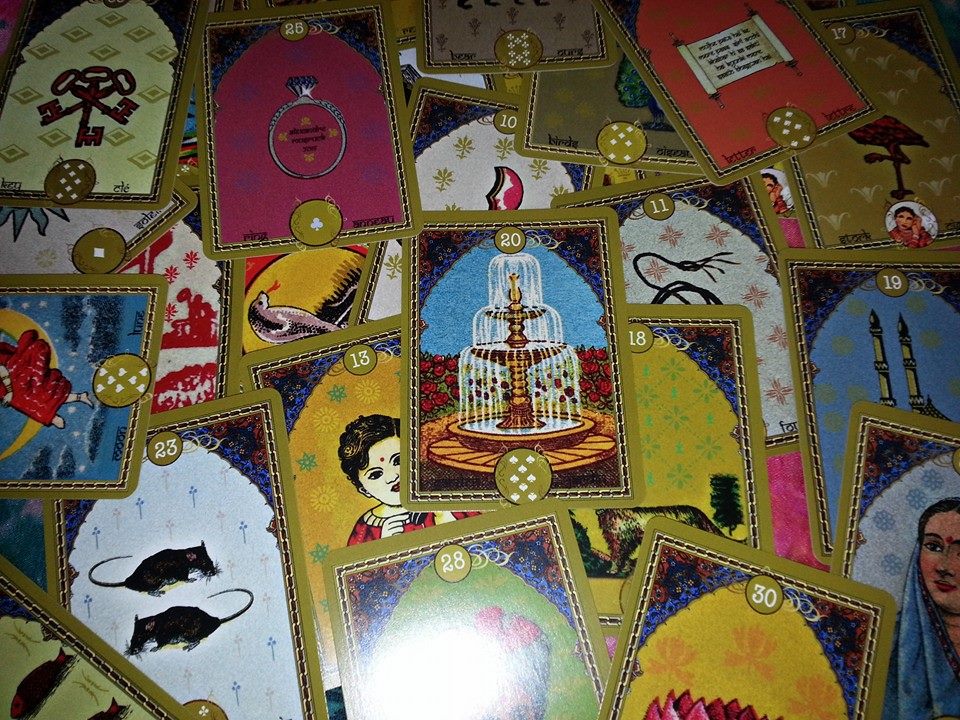 An exotic lenormand with beautiful colors and an outstanding design. Bring the richness of Indian culture in your readings.