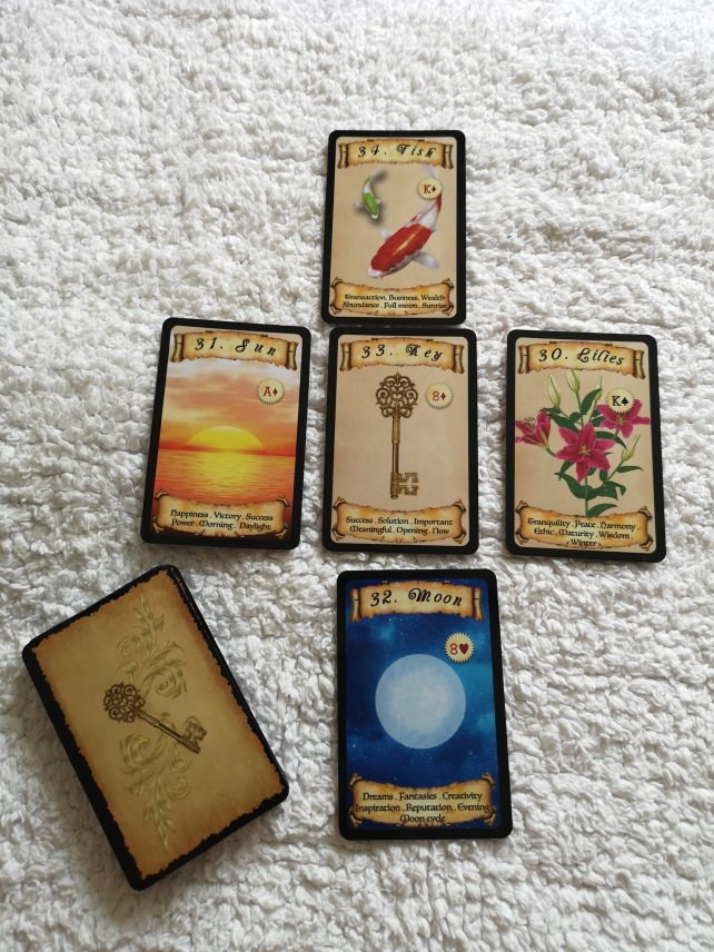 The apprentice’s oracle is a traditional Lenormand of 36 cards Lenormand specially designed for those who want to learn and perfect their Lenormand readings. On each card you will find the number and name of the card, the playing card insets, keywords and time indicator, all nicely illustrated by me.