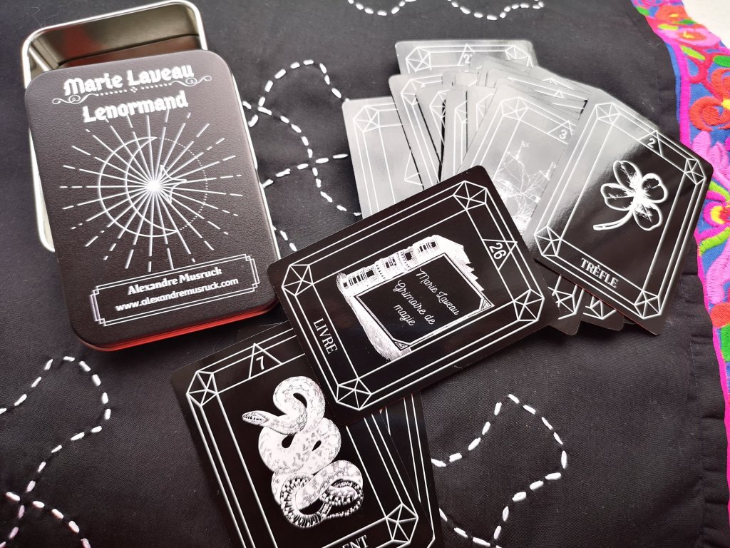 Like Mlle Lenormand, Marie Catherine Laveau is an emblematic figure of magic and divination. Of Creole origin, her extraordinary gifts made her the queen of voodoo, and her fame was so important that she exceeded the limits of Louisiana. The Marie Laveau Lenormand is a set of 36 cards, drawn with chalk, like the vé vé that Marie Laveau used in her voodoo ceremonies. This petit Lenormand will be your personal gris-gris and will allow you to read the future, awaken your intuition, attract and draw magic to your readings (The Marie Laveau Lenormand is the little sister of the Hoodoo Lenormand available in mini)